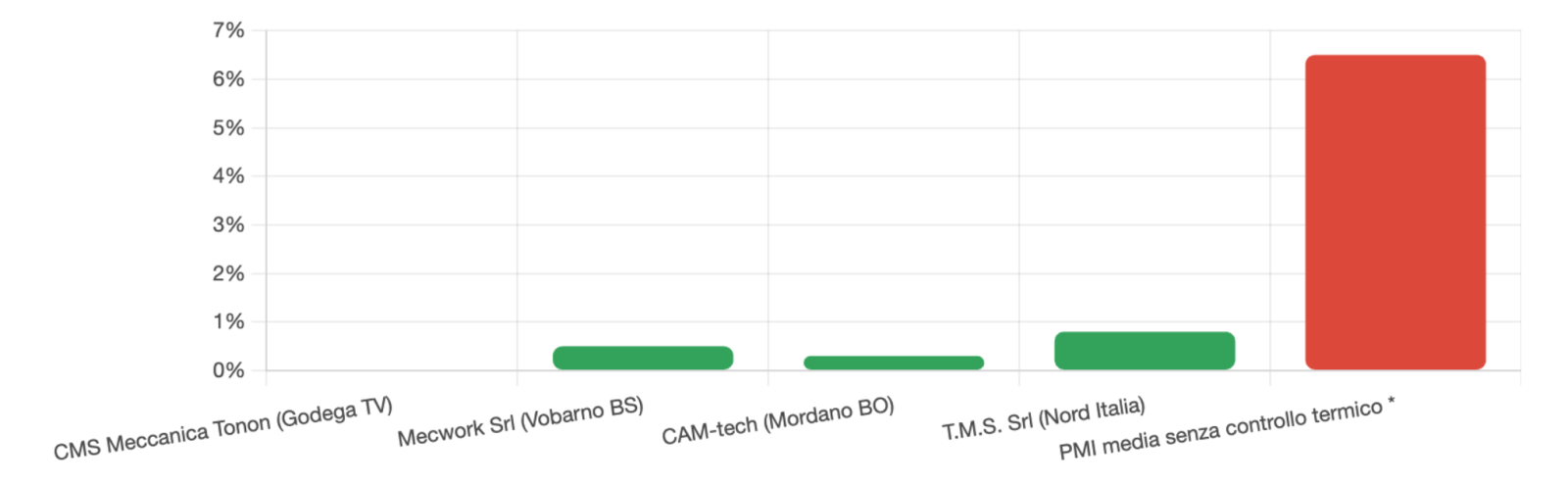 Dati pubblici dai siti istituzionali delle aziende italiane citate · benchmark PMI senza controllo termico da studi internazionali